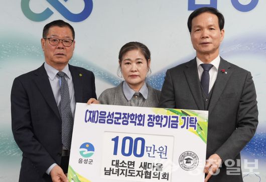 대소면새마을남녀지도자협의회(회장 이정석·김영미)는 지역인재 육성을 위한 장학금 100만원을 (재)음성군장학회에 기탁했다.