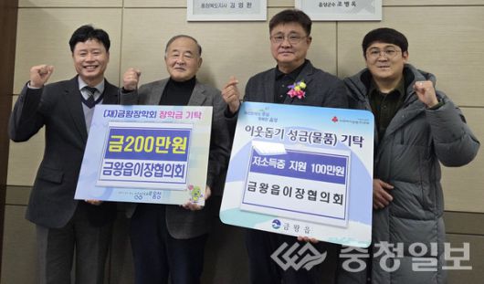 금왕읍이장협의회(회장 윤세영)에서도 저소득가정에 전달해 달라며 금왕읍행정복지센터에 성금 100만원과 금왕장학회(이사장 여용주)에 장학금 200만원을 기탁하며 지역사회에 따뜻한 나눔을 실천했다.