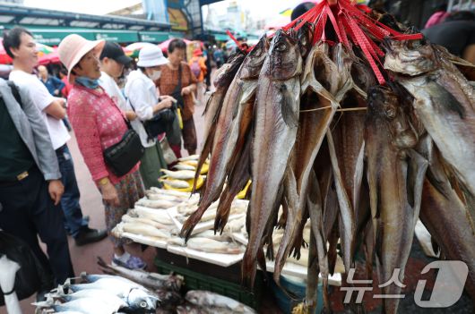 본격적인 추석 연휴가 지난해 10월 서울 동대문구 청량리 청과물시장을 찾은 많은 시민들이 제수용품을 둘러보고 있다. 2025.10.3/뉴스1 ⓒ News1 권현진 기자 |