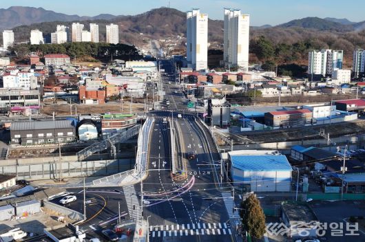 충북 옥천군 옥천읍 서남부지역을 연결하는 마암리 과선교 확장도로가 개통되면서 서남부권 균형발전과 교통환경 개선을 이끌 핵심 교통 인프라가 완성됐다.