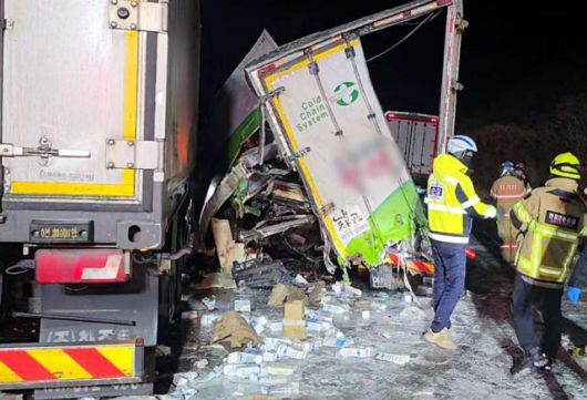 이 사고로 신원이 확인되지 않은 화물차 운전자가 심정지 상태로 병원으로 이송됐고, 나머지 화물차 운전자 3명은 병원에서 치료를 받고 있다.