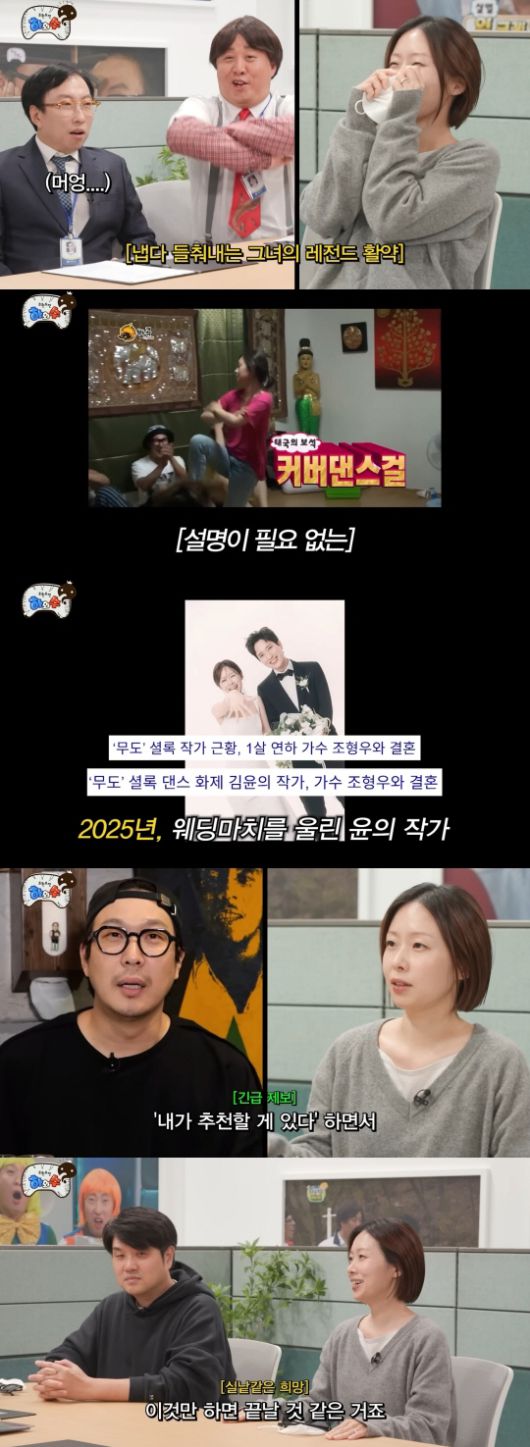 이날 김윤의는 근황을 공개했다. 지난해 6월 가수 조형우와 결혼했다는 그는 "그 친구도 MBC와 인연이 있다. '위대한 탄생'이라는 프로그램에 나왔던 친구"라고 전했다. 현재 하는 일에 대해서는 "드라마 쪽도 잠깐 했고, 지금은 경기도 정책 홍보하는 홍보 일을 한다"고 설명했다.