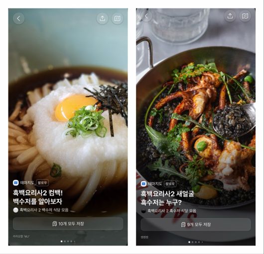 카카오맵은 이미 '테마지도' 기능에서 흑백요리사 식당 모음집을 제공하고 있다. 테마지도는 빅데이터와 최신 트렌드를 바탕으로 여행·맛집·데이트 코스 등 테마에 맞는 장소를 선정해 소개한다.