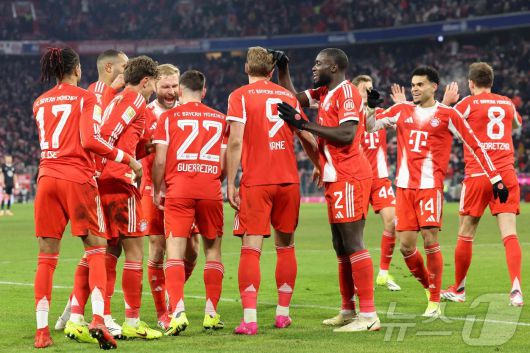 바이에른 뮌헨 선수들이 12일(한국시간) 독일 뮌헨의 알리안츠 아레나에서 열린 볼프스부르크와 2025-26 독일 분데스리가 16라운드에서 득점 후 기뻐하고 있다. ⓒ AFP=뉴스1 |