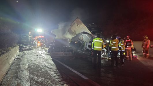 오늘(12일) 오전 2시 46분쯤 청주시 상당구 문의면 서산영덕고속도로 청주 방향 문의청남대 휴게소 인근에서 화물차 4대가 추돌했습니다.