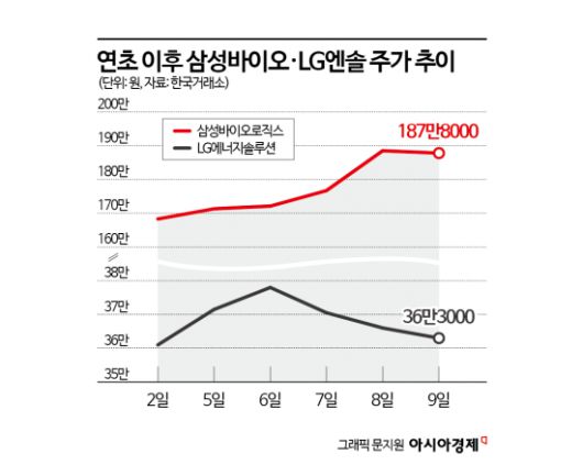 12일 한국거래소에 따르면 지난 9일 삼성바이오로직스는 시가총액 86조9344억원로 시총 3위, LG에너지솔루션은 84조9420억원으로 4위를 기록했다. 삼성바이오로직스가 8일 3위를 탈환했고 9일 오전에는 LG에너지솔루션이 3위를 되찾기도 했으나 부진한 지난해 4분기 실적 발표 등으로 다시 3위 자리를 내줬다.