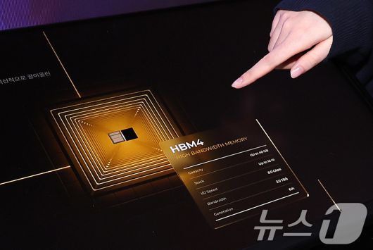 22일 서울 강남구 코엑스에서 열린 제27회 반도체 대전(SEDEX 2025)을 찾은 관람객이 공개된 SK하이닉스 HBM4 실물을 살펴보고 있다. 2025.10.22/뉴스1 ⓒ News1 박지혜 기자 |