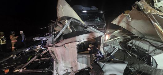 경찰 등에 따르면 이날 오전 2시 48분경 충북 청주시 상당구 문의면 서산영덕고속도로 청주 방향 문의청남대휴게소 인근에서 60대 A 씨가 몰던 2t(톤) 화물차가 앞서가던 14t 화물차를 들이받았다.