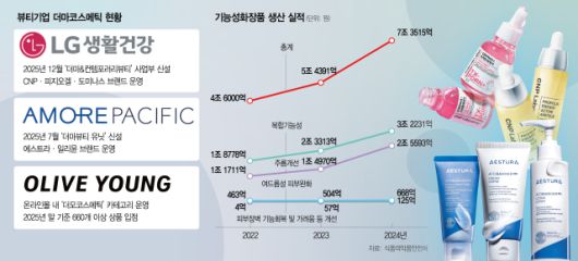 식품의약품안전처에 따르면 2024년 기능성화장품 생산실적은 7조 3515억 원으로 사상 최대를 기록했다. 특히 ‘피부장벽 기능회복 및 가려움 등 개선’ 제품은 전년 대비 119% 증가했고 주름개선(+70.9%), 여드름성 피부완화(+32.5%) 등 더마코스메틱과 연관된 기능성 화장품의 생산실적이 눈에 띄게 늘었다.