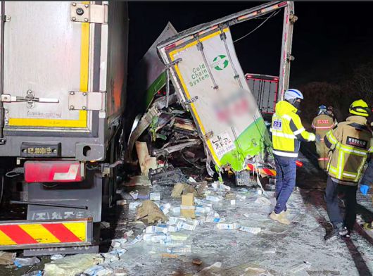 오늘(12일) 오전 2시 46분쯤 청주시 상당구 문의면 서산영덕고속도로 청주 방향 문의청남대 휴게소 인근에서 화물차 4대가 추돌했습니다.