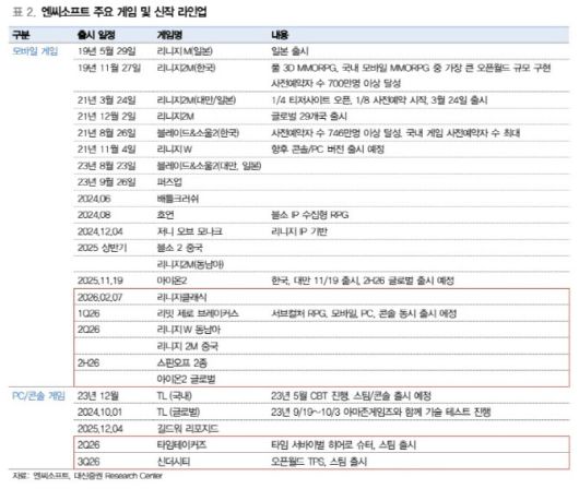 이지은 대신증권 연구원은 이날 보고서에서 “지난해 11월 출시한 신작인 ‘아이온2’의 흥행에도 당분간 실적 기여가 유의미한 신작이 부재할 것으로 판단해왔으나, 회사가 연초 공개한 ‘리니지 클래식’의 출시 이후 대작 라인업이 가시화되고 있다”며 이같이 밝혔다.