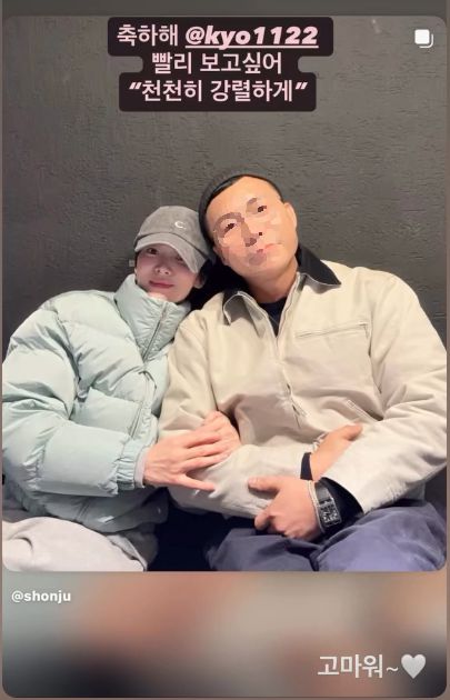 해당 게시물에는 “So lovely to see you. ‘천천히 강렬하게’ 촬영 잘 마쳤다니 아주 많이 축하해. Well done, can‘t wait to watch it”이라는 문구와 사진이 담겼다.