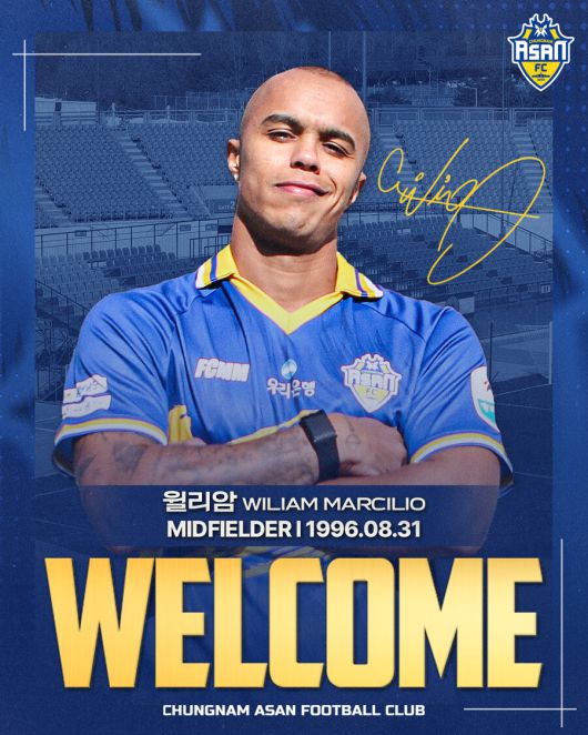충남아산 유니폼을 입게 된 윌리암은 “아산이란 도시와 충남아산FC에 오게 되어 정말 기쁘다. 팬분들과 함께 경기장에서 기쁨과 즐거운 감정을 함께 나눌 수 있도록 최선을 다하겠다. 이곳에서 함께 새로운 역사를 만들고 싶다”고 입단 소감을 밝혔다.
