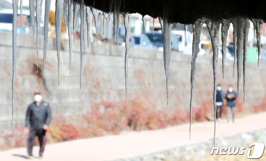 12일 대전·충남의 아침 기온이 내륙 지역을 중심으로 –10도 안팎의 맹추위를 보이고 있다. 공주 선화교에 고드름이 얼어 있다. /뉴스1 ⓒ News1 김기태 기자 |