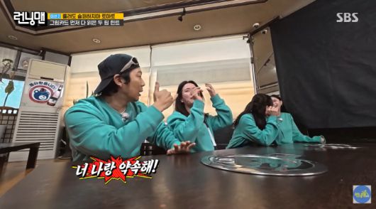 송지효는 자리까지 바꾸며 적극적으로 임했지만, 이어진 차례에서도 실수가 이어졌다. 이에 하하는 장난 섞인 목소리로 "너 술 끊을래? 안 끊을래? 빨리 맹세해라. 나랑 약속해"라고 나무랐다. 이에 송지효는 "헷갈렸다"며 해명했지만, 곧 "술 끊겠다"고 약속해 웃음을 자아냈다.