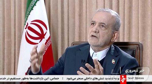 (테헤란 로이터=뉴스1) 김지완 기자 = 11일(현지시간) 마수드 페제시키안 이란 대통령이 국영 IRIB 방송에 출연한 모습. 사진은 인터뷰 영상 갈무리. 2026.01.11 ⓒ 로이터=뉴스1 Copyright ⓒ 뉴스1. All rights reserved. 무단 전재 및 재배포, AI학습 이용 금지.