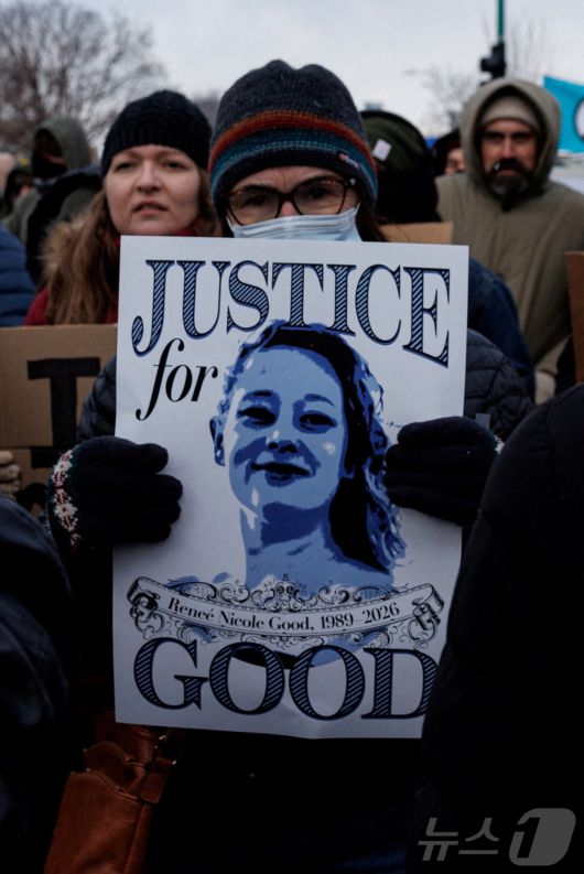 (미니애폴리스 로이터=뉴스1) 김지완 기자 = 10일(현지시간) 미국 미네소타주 미니애폴리스에서 르네 니콜 굿(37)이라는 이름의 여성이 이민세관단속국(ICE) 요원의 총에 맞아 숨진 사건에 항의하는 시위가 열리고 있다. 2026.01.10 ⓒ 로이터=뉴스1 Copyright ⓒ 뉴스1. All rights reserved. 무단 전재 및 재배포, AI학습 이용 금지.
