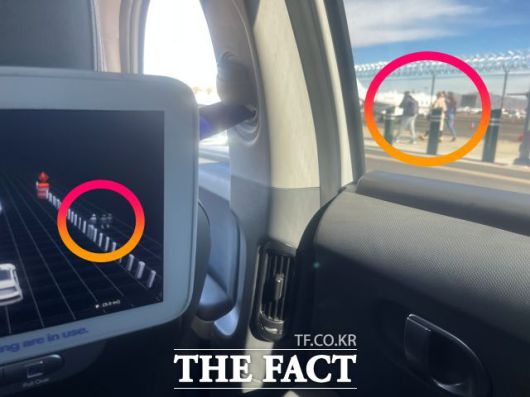 지나가는 사람을 실시간으로 인식하고 있었기에 행인이 있으면 부드럽게 정차와 출발을 이어갔다. 로보택시는 방지턱이 보이면 속도를 줄이고 구간을 부드럽게 넘어갔다. 뒷좌석에 앉아 있었지만 불편함을 느끼기 어려웠다.