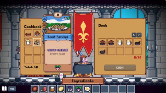 요리 카드는 실제 영국과 아일랜드의 전통 레시피를 기반으로 제작된 42종으로 구성되며, 플레이 도중 만나는 헌터 헌(Herne the Hunter), 울버(Wulver) 등 8명의 전설적 캐릭터가 여정에 변화를 더한다. 조미료(Seasonings), 조리도구(Cookware), 포션(Potions), 유물(Artefacts) 등은 매 플레이마다 전략을 달리하도록 유도하며, 탈리에신의 서(Book of Taliesin)를 중심으로 한 성장 시스템을 통해 새로운 메커니즘을 해금하고 다음 도전을 강화할 수 있다.