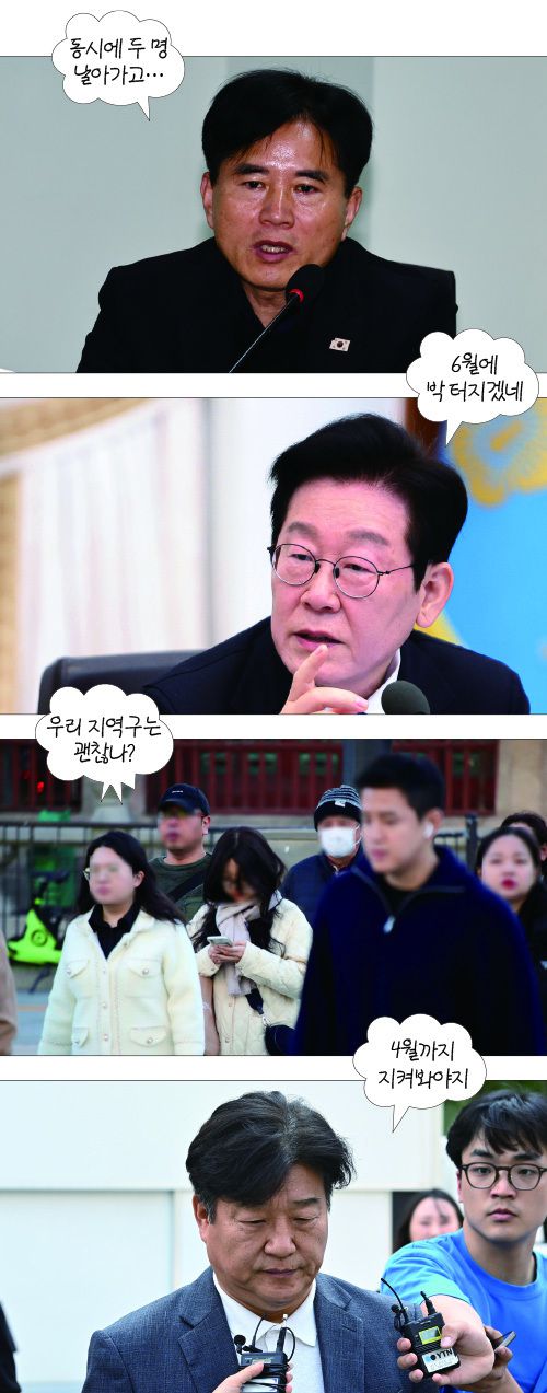 더불어민주당 이병진·신영대 의원이 공직선거법 위반으로 의원직을 잃게 됐다. 이로써 6·3 지방선거와 동시에 국회의원 재보궐선거는 이재명 대통령의 지역구였던 인천 계양을과 강훈식 비서실장 지역구인 충남 아산을에 이어 4곳으로 늘어났다. 여기에 서울시장 등 광역단체장까지 고려하면 최대 10석 안팎을 놓고 겨루는 만큼 ‘미니 총선’ 못지않다는 관측이 나온다. 선거법 위반으로 기소된 더불어민주당 양문석 의원과 불법 기부 행위 혐의를 받는 송옥주 의원의 2심 재판이 진행중인 만큼 선거판이 더 커질 가능성도 제기된다. 재보선 대상 지역은 오는 4월30일까지 실시 사유가 확정된 곳으로 정해진다.