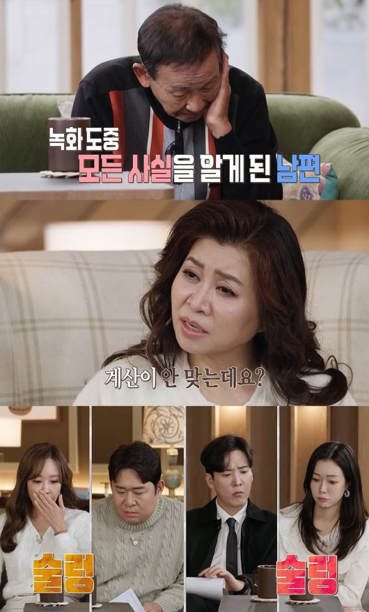 이어진 아내의 고백은 충격 그 자체다. 아내는 "'이것들' 때문에 3억 5천만 원의 빚을 졌고, 건물과 집까지 모두 날렸다. 남편은 아무것도 모른다"라고 밝혀 모두를 경악하게 만든다. 녹화 현장에서 처음으로 아내의 빚 규모와 정체를 알게 된 남편은 한동안 말을 잇지 못한 채 충격에 빠진다. 평생을 일궈온 재산을 잃어버린 상실감에 남편은 결국 눈물까지 쏟아낸다는데.