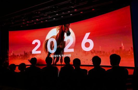 김민석 국무총리를 비롯한 경제계 인사들이 지난 2일 오후 서울 중구 대한상공회의소 국제회의장에서 ‘2026 경제계 신년인사회’를 하고 있다. |