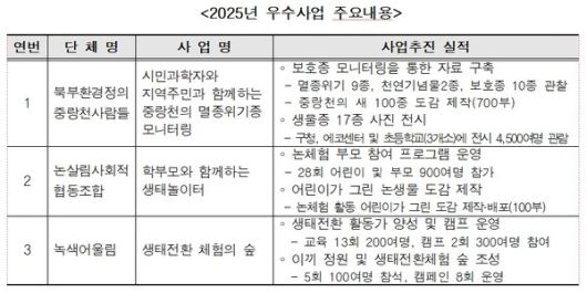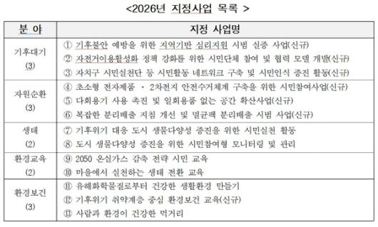 올해는 지역 기반 기후 불안 심리지원, 초소형 전자제품·2차 전지 수거 시민참여, 멸균팩 분리 배출 시범사업 등 신규 지정사업을 발굴해 지원할 예정이다.