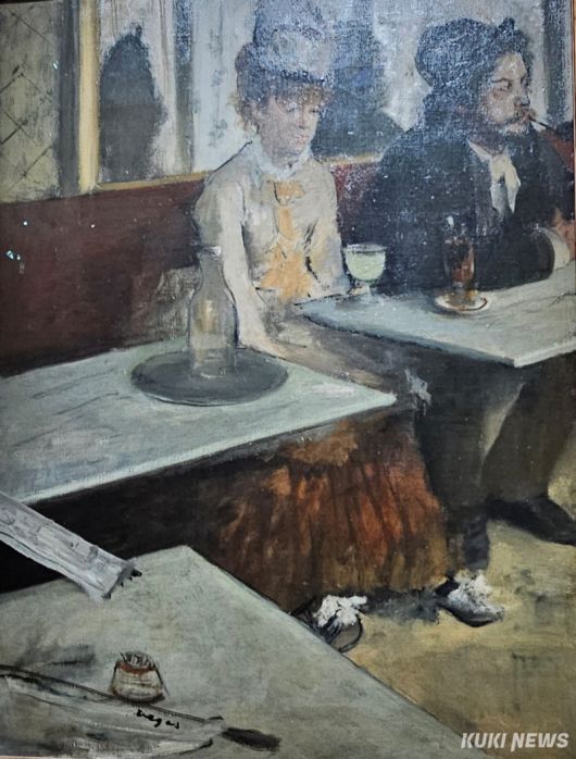 <압생트>의 구도는 즉흥적인 듯 보이지만, 그 속에는 깊은 고뇌와 세밀한 구성이 숨어 있다. 이는 공간과 인물의 긴장감, 그리고 그 안에서 흐르는 공기를 고스란히 담아낸 걸작이다.