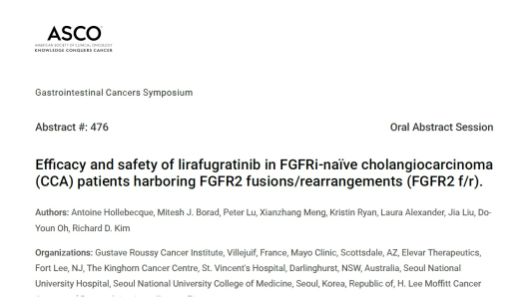ASCO GI 2026에서 공개된 리라푸그라티닙 담관암 임상 2상 결과 초록 |
