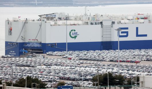 경기 평택시 포승읍 평택항에 수출용 차량이 세워져 있는 모습. /뉴스1 |