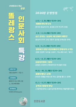 (인천=국제뉴스) 이병훈 기자 = 인천시 인천도서관은 일반 시민을 대상으로 '2026년 똘레랑스 인문사회 특강'을 운영한다.