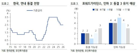 향후 통화정책 방향에 대한 위원들의 인식을 보여주는 포워드 가이던스 역시 인하 3명, 동결 3명으로 11월 회의와 동일할 것으로 내다봤다.