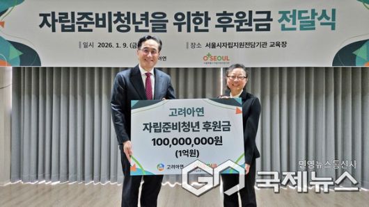 9일 서울 용산구 서울시자립지원전담기관 교육장에서 진행된 전달식 행사에는 김기준 고려아연 지속가능경영본부장(부사장), 박진하 서울시자립지원전담기관장 등 주요 관계자 10여명이 참석한 가운데 2026년 지원사업 추진계획 공유와 기부금 전달식, 기념촬영 등이 진행됐다.