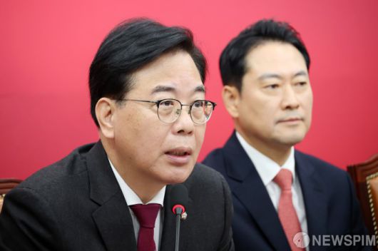 [서울=뉴스핌] 정일구 기자 = 송언석 국민의힘 원내대표가 12일 오전 서울 여의도 국회에서 열린 최고위원회의에서 모두발언을 하고 있다. 2026.01.12 mironj19@newspim.com |