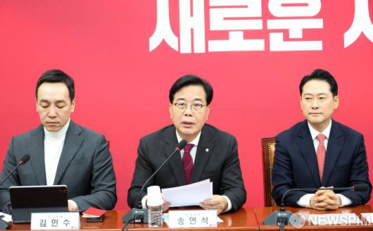[서울=뉴스핌] 정일구 기자 = 송언석 국민의힘 원내대표가 12일 오전 서울 여의도 국회에서 열린 최고위원회의에서 모두발언을 하고 있다. 2026.01.12 mironj19@newspim.com