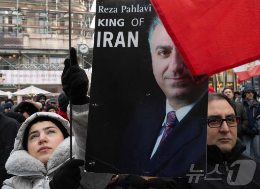 11일(현지시간) 오스트리아 빈에서 이란의 반정부 시위를 지지하는 시민들이 이란의 마지막 국왕(샤)의 망명 중인 아들 레자 팔라비의 사진을 들어 올리고 있다. ⓒ AFP=뉴스1 |