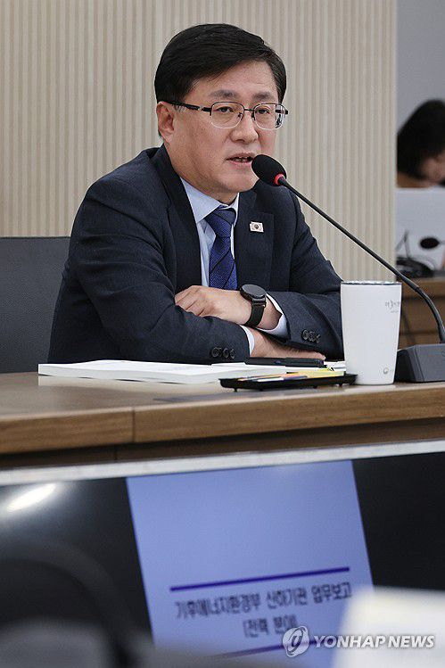 (세종=연합뉴스) 김주성 기자 = 김성환 기후에너지환경부 장관이 12일 정부세종청사에서 열린 한전KDN 등 에너지 분야 산하기관 업무보고를 받기에 앞서 발언하고 있다. 2026.1.12