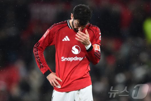 맨체스터 유나이티드의 주장 브루노 페르난데스가 12일(한국시간) 영국 맨체스터의 올드 트래퍼드에서 열린 브라이튼 앤드 호브 앨비언과 2025-26 FA컵 3라운드에서 패배 후 아쉬워하고 있다. ⓒ AFP=뉴스1 |