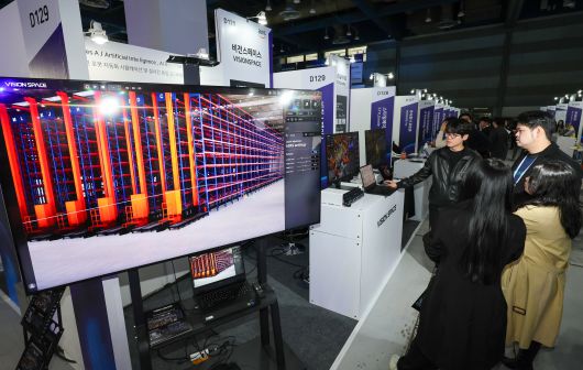 서울 강남구 코엑스에서 열린 국내 최대 규모 글로벌 스타트업 페스티벌 '컴업(COMEUP) 2025'에서 관람객들이 디지털트윈 로봇 자동화 시뮬레이션 및 통합 모니터링 플랫폼에 대한 설명을 듣고 있다. 사진은 기사 내용과 무관/뉴스1 |