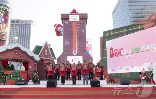 (서울=뉴스1) 유채연 기자 = 사랑의열매 사회복지공동모금회가 진행하는 연말연시 집중모금캠페인인 '희망2026나눔캠페인'의 '사랑의온도탑'이 지난해보다 이틀 빠르게 100도를 돌파했다.