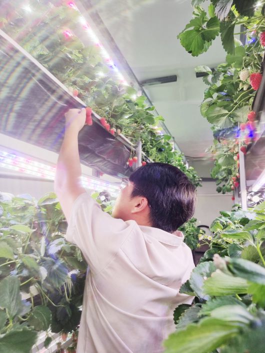 울산 지역 스타트업 아워즈팜은 울산 울주군의 청년농업인 육성사업 지원에 힘입어 자체 개발한 ICT 기반 자동화 재배 시스템으로 모종부터 수확까지 전 과정을 정밀 관리해 고품질 딸기 생산에 성공했다. [울주군 제공] |