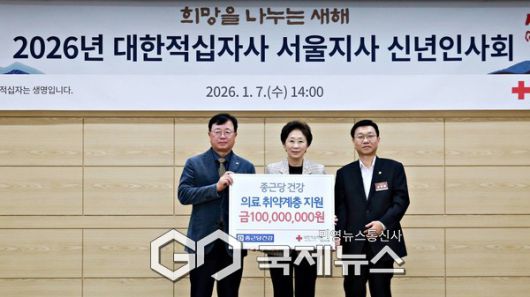 (서울=국제뉴스) 김서중 기자 = 대한적십자사 서울특별시지사(회장 권영규)는 종근당건강(대표이사 정수철)이 의료 사각지대 해소와 의료 소외계층 지원을 위해 성금 1억 원을 기탁했다고 밝혔다. 이번 기탁은 경제적·제도적 이유로 적절한 의료서비스를 받기 어려운 이웃들의 건강권 보장을 위해 마련됐다.