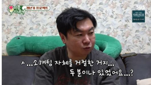 허경환이 "원희 형이랑 소개팅하고 싶다는 분이 두 분 계셨다고?"라며 놀라자 임원희는 "소개팅 자체를 거절한 거다"고 민망해했다.