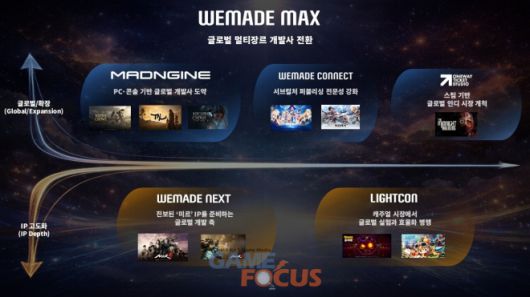 위메이드맥스 산하 ▲매드엔진 ▲위메이드커넥트 ▲위메이드넥스트 ▲원웨이티켓스튜디오 ▲라이트컨 등 5대 핵심 스튜디오의 독립성과 전문성을 강화하고, 장르·플랫폼·지역별로 분산된 개발 구조를 통해 글로벌 경쟁력을 확보한다는 방침이다.