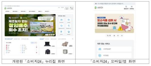 정보 접근성 향상을 위한 메뉴 정비도 함께 이뤄졌다. 소비자 이용 빈도가 높은 상품·안전정보를 품목과 유형별로 구분해 물품·리콜·인증 정보를 통합 제공해 소비자 관심 정보에 대한 이용을 용이하게 한 것이다.
