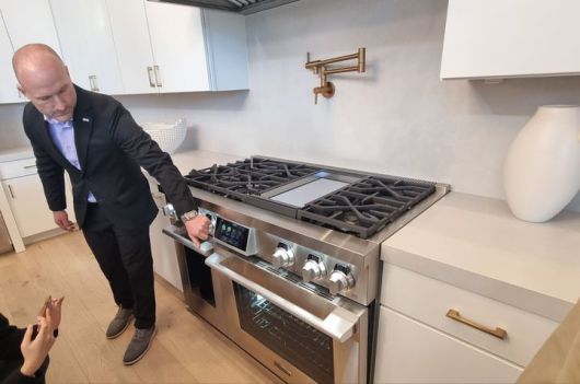 [라스베이거스=뉴시스]이지용 기자 = LG전자 미국 법인 직원이 LG전자 SKS 모델 하우스에서 오븐을 소개하고 있다. 2026.01.07. leejy5223@newsis.com *재판매 및 DB 금지 |