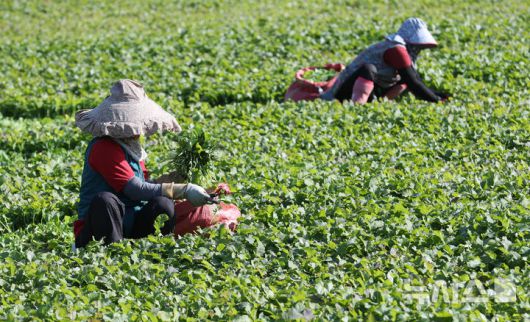 [제주=뉴시스] 우장호 기자 = 지난해 12월10일 오전 제주시 봉개동에서 농민들이 유채나물을 수확하고 있다. 2025.12.10. woo1223@newsis.com |