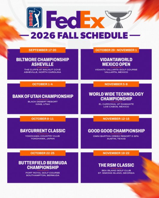 [서울=뉴스핌] 김용석 기자 = PGA 투어가 일본, 멕시코 등을 포함한 2026시즌 페덱스컵 가을 시리즈 일정을 확정, 최근 발표했다.