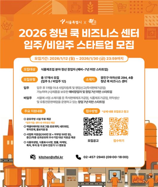 서울시가 전 세계적인 K-푸드 열풍 속에서 미래 먹거리 산업의 핵심인 식품 제조와 푸드테크 분야를 선도할 창의적인 청년 창업가에 대한 지원을 2026년에도 이어간다.