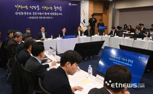 산업통상부 산업부문 공공기관 업무보고가 12일 서울 중구 대한상공회의소에서 열렸다. 김정관 산업통상부 장관이 모두발언을 하고 있다.